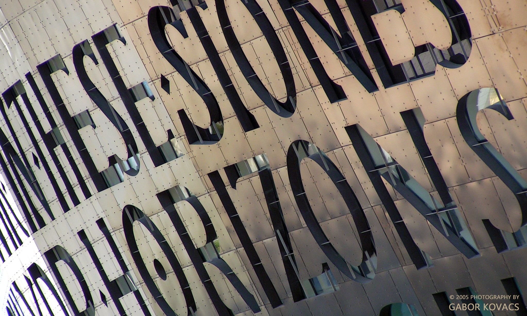 The Millennium Concert Hall, Cardiff, September 2005. Behind the letters are windows.
