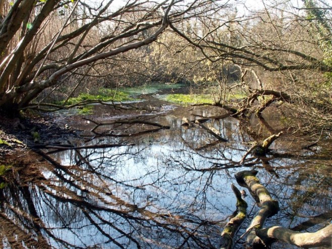 I was just above the spring that feeds this pool. The stream flows into the river Hamble.