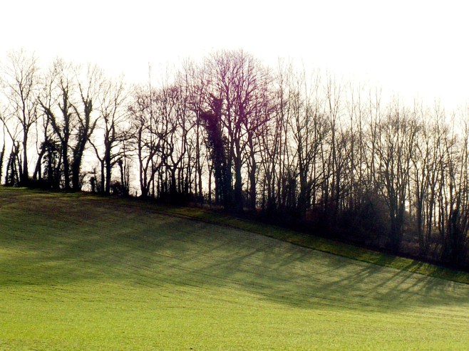 I liked the weak winter sunlight behind the trees and the stronger shadows.