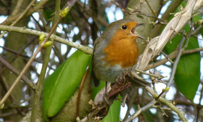 Sunday 26 February, 2012. I was sitting in the garden, enjoying the sunshine, and this little fellow was singing his heart out.