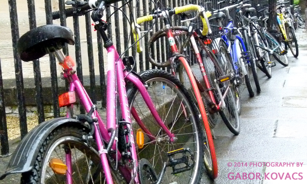 Chained to railings opposite the Bodleian Library, Oxford.