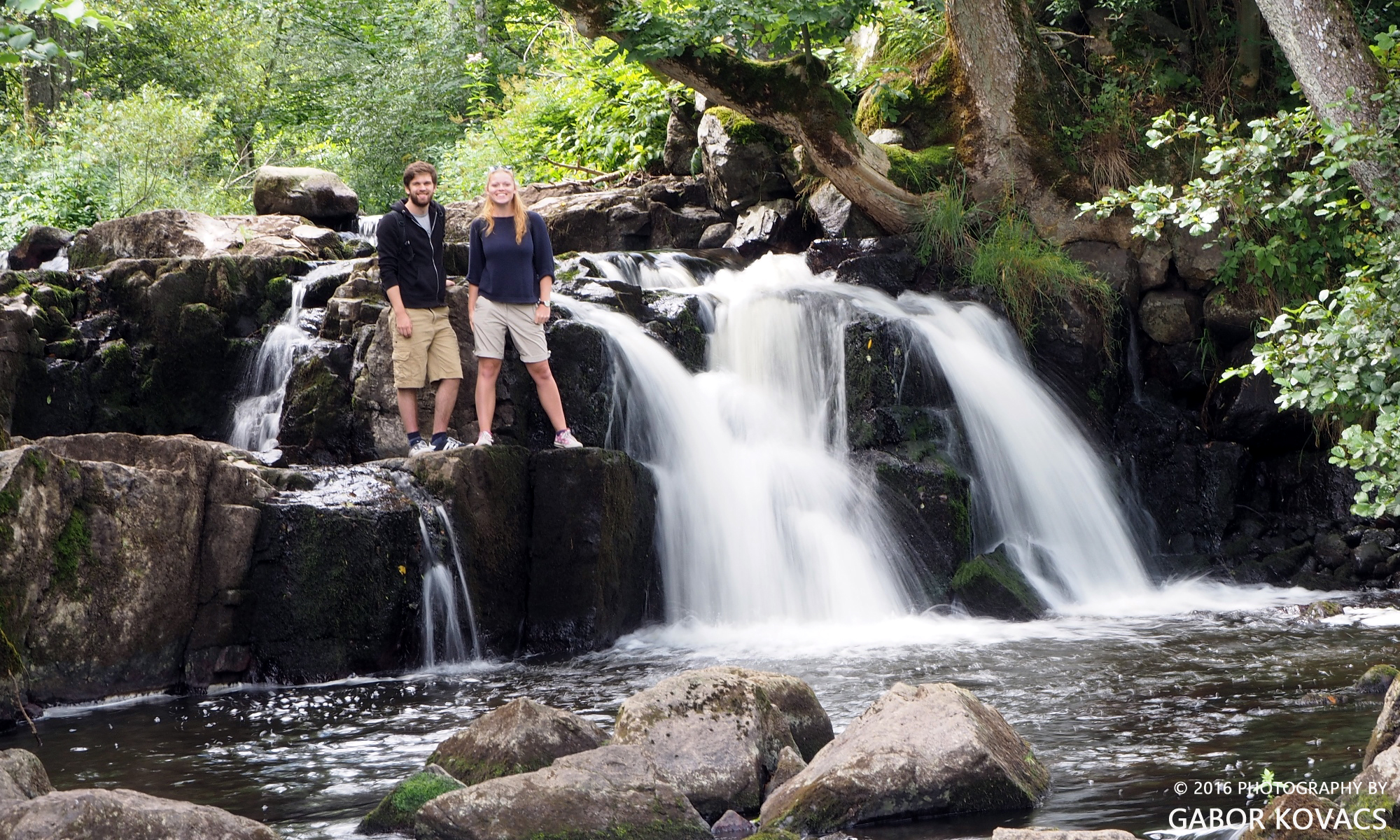Rich and Lucy at the Forsakar waterfall in Skåne, Sweden. In fact it is a series of cascades.