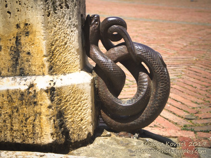 At the bottom of a bollard in the main Piazza, Siena.