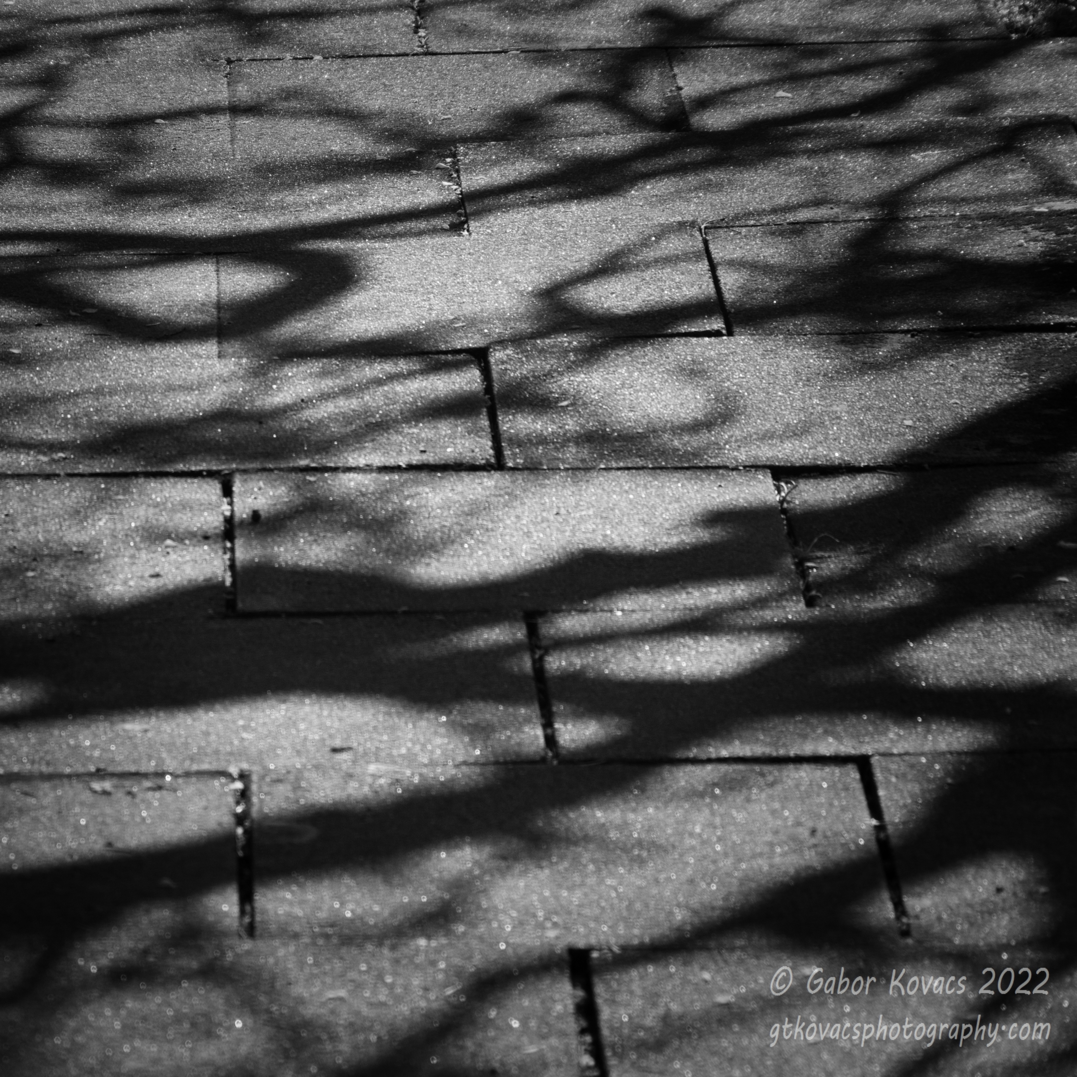 the shadows are of wisteria trained over a pergola walkway at Hambleton Hall.