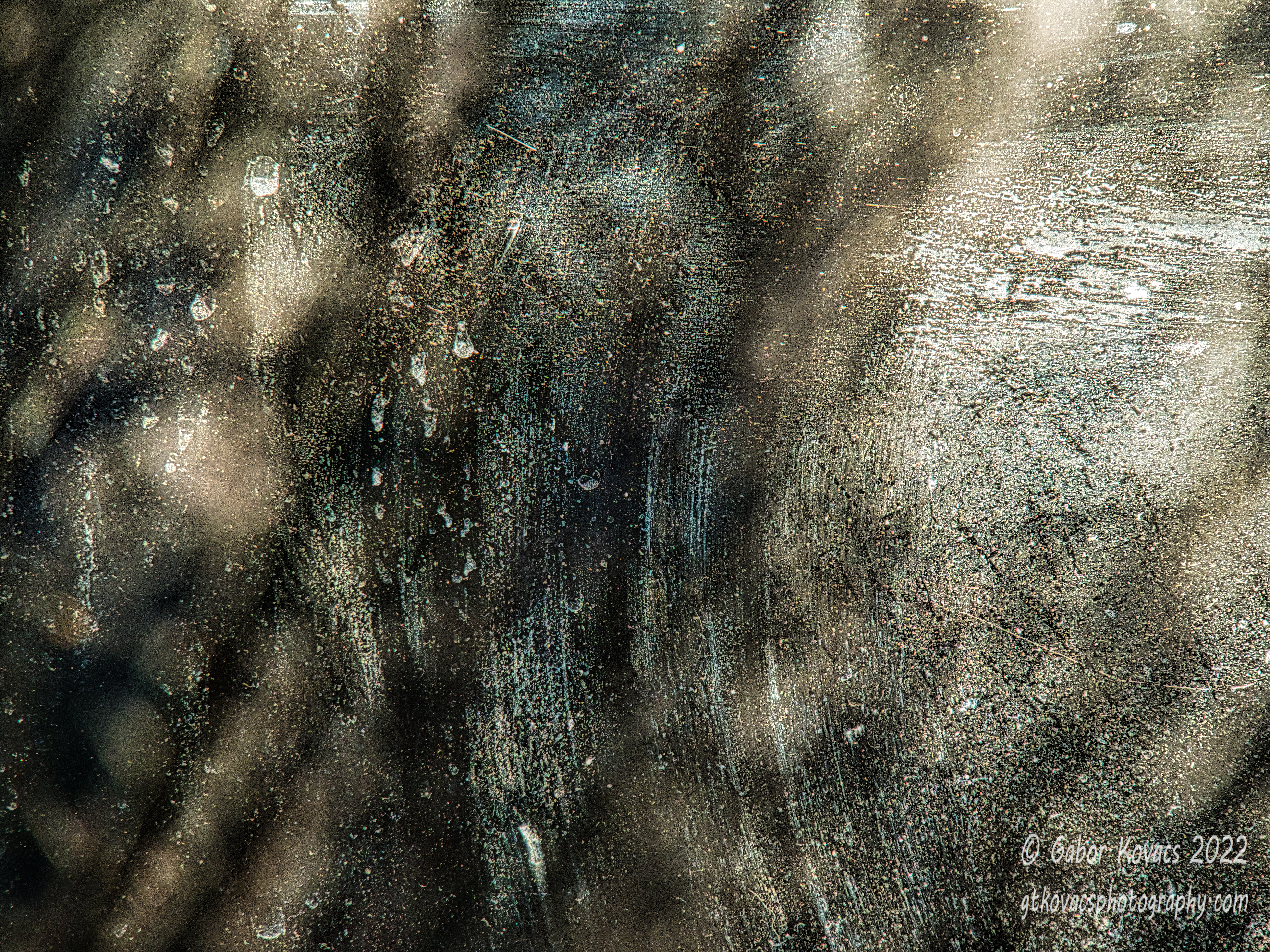 I was taking photographs of the garden this morning, after a heavy overnight frost. These 2 photographs are taken through a window, focussing on the condensation inside the window and the frost outside.