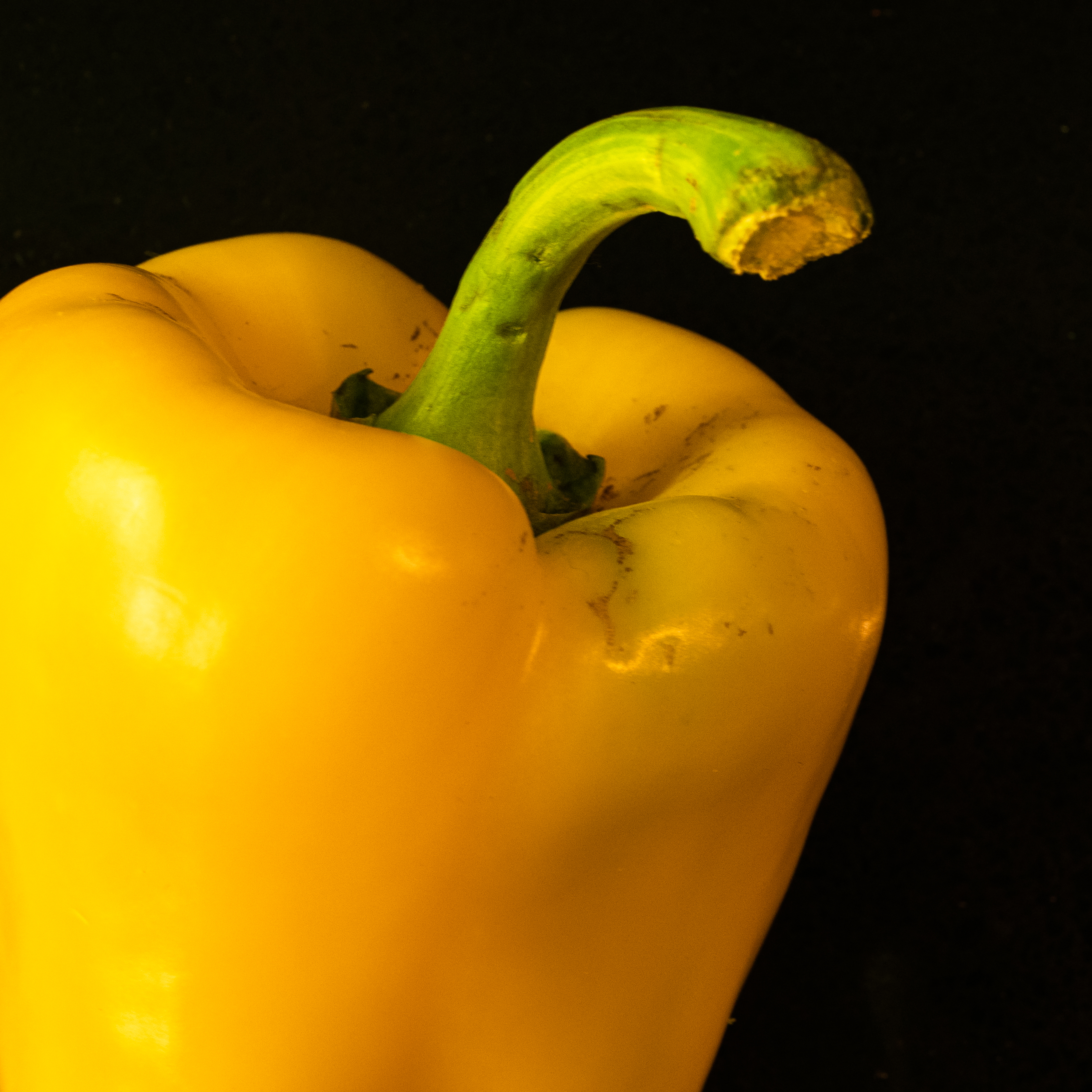 The assignment in week 9 was a simple one – to produce a square photograph. I treated this assignment very much as an exercise in composition, knowing that the resulting image would be square. I concentrated on positioning the pepper in the left of the frame, and cropped the right. I increased saturation and luminance on the yellow (a lot) and the green (a bit).