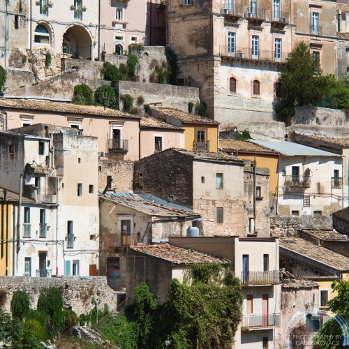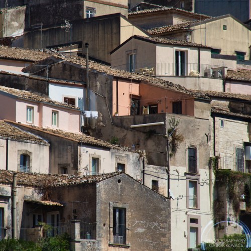 5 square-cropped images of the houses crammed in together in Ragusa, Sicily. Click on an image to view large