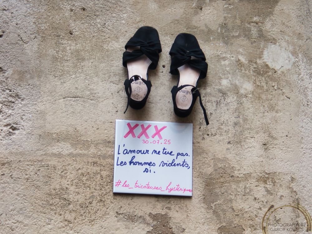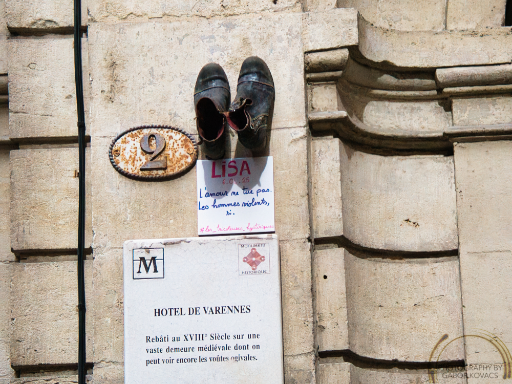 I understand that these pairs of shoes record incidents of violence by men against women. I only saw 3 in Montpellier; I hope that there were no others.